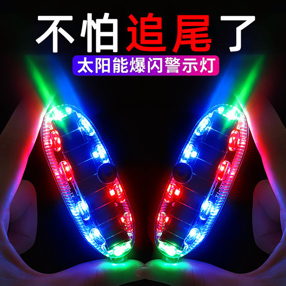 电动车摩托车太阳能防追尾夜间警示爆闪灯震动感应车尾免接线强光