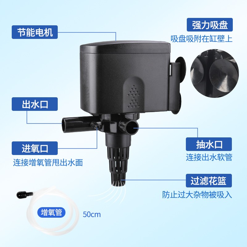 松宝静音氧气泵鱼缸水泵三合一潜水泵水族箱过滤器循环抽水增氧泵