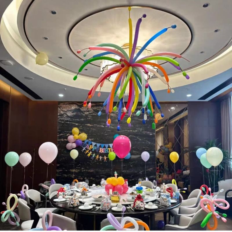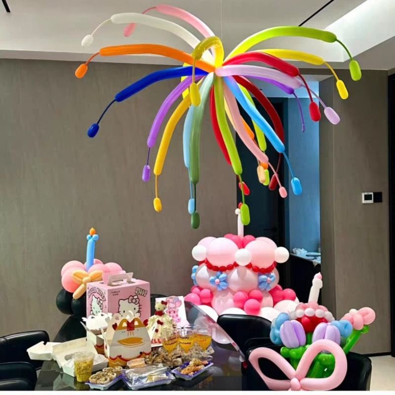 多巴胺烟花长条气球氛围场景布置生日领证结婚情人节拍照道具神器