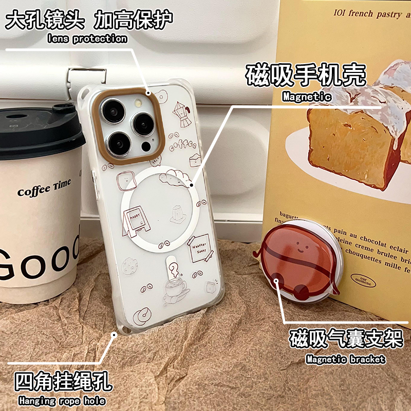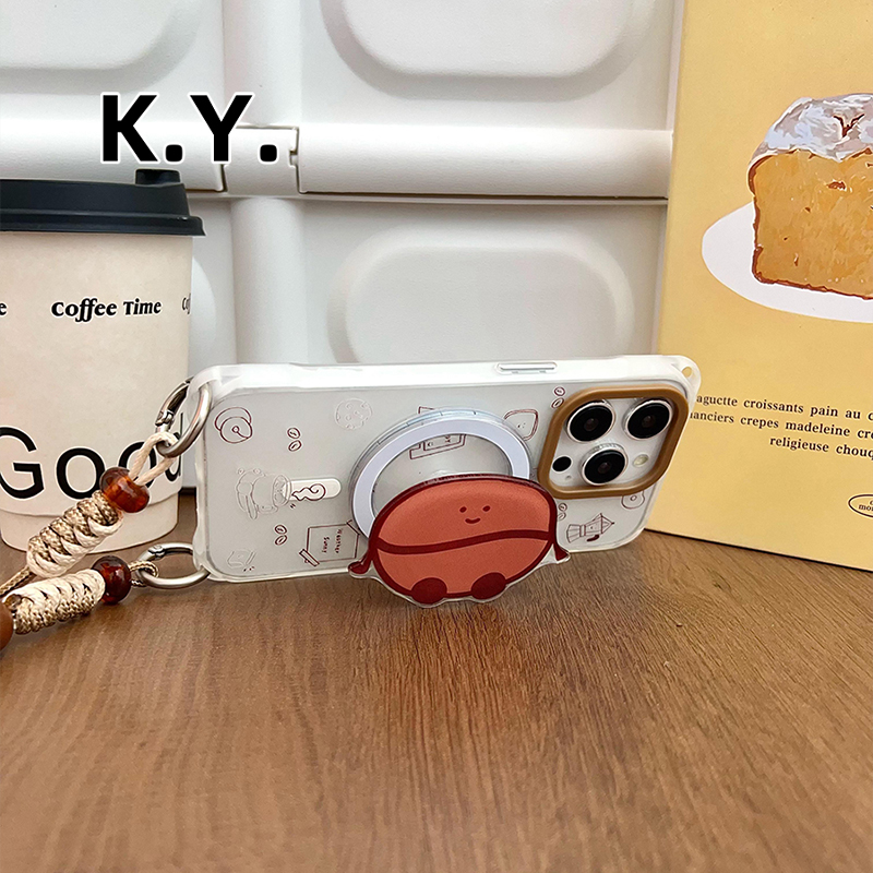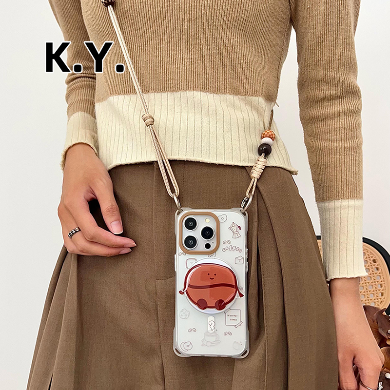 ins创意笑脸板栗磁吸手机壳带挂绳适用于iPhone16pro华为mate60/70手腕斜跨珠链小米15ultra四角开孔findx8