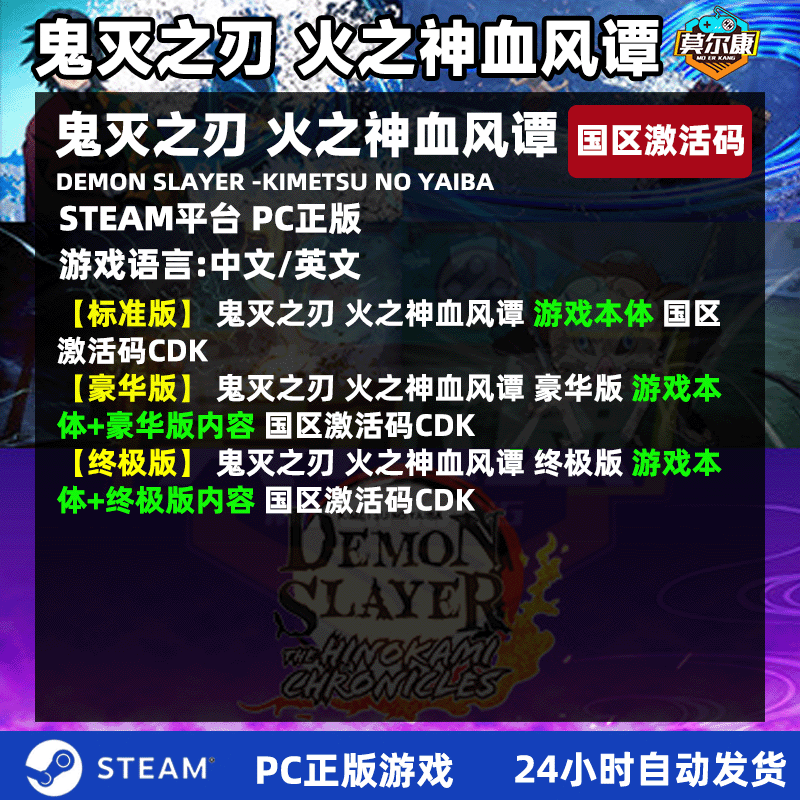 Steam游戏 鬼灭之刃 火之神血风谭 国区激活码CDKEY 3D格斗游戏 PC中文正版