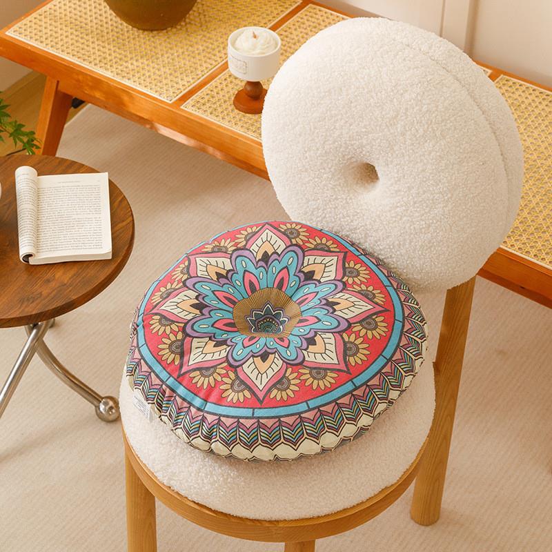 棉麻圆形椅子坐垫透气居家用波西米亚风双面阳台飘窗榻榻米地板垫