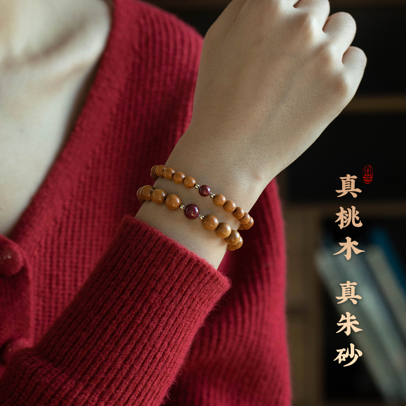 大善堂天然老桃木素圈手串朱砂转运珠手链女士念珠文玩高档礼物
