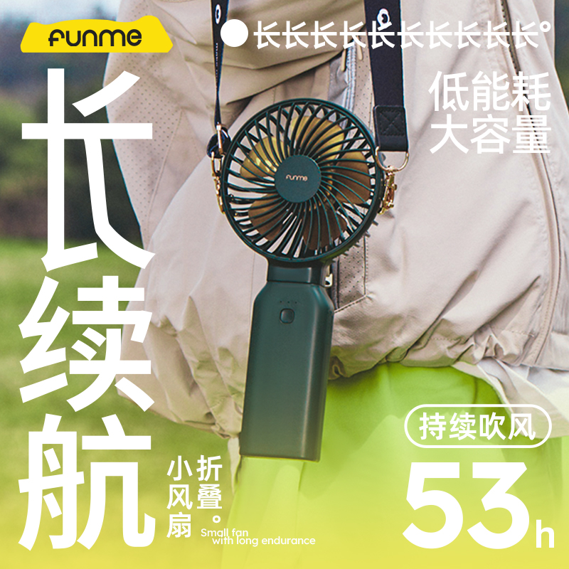 FUNME挂脖折叠手持小风扇欢迷usb迷你便携超长续航随身小型吹风扇学生宿舍办公室桌面静音充电宝降温电风扇