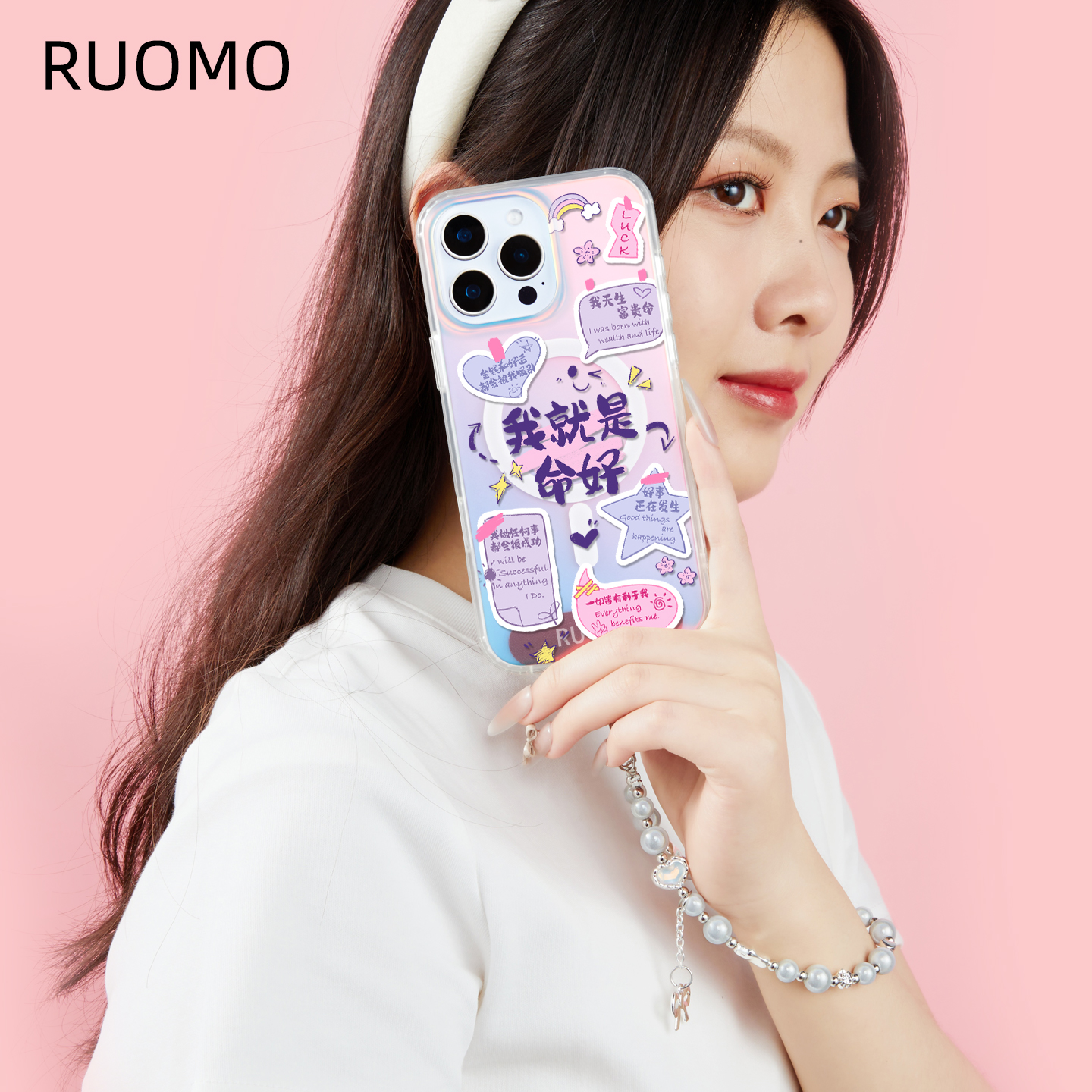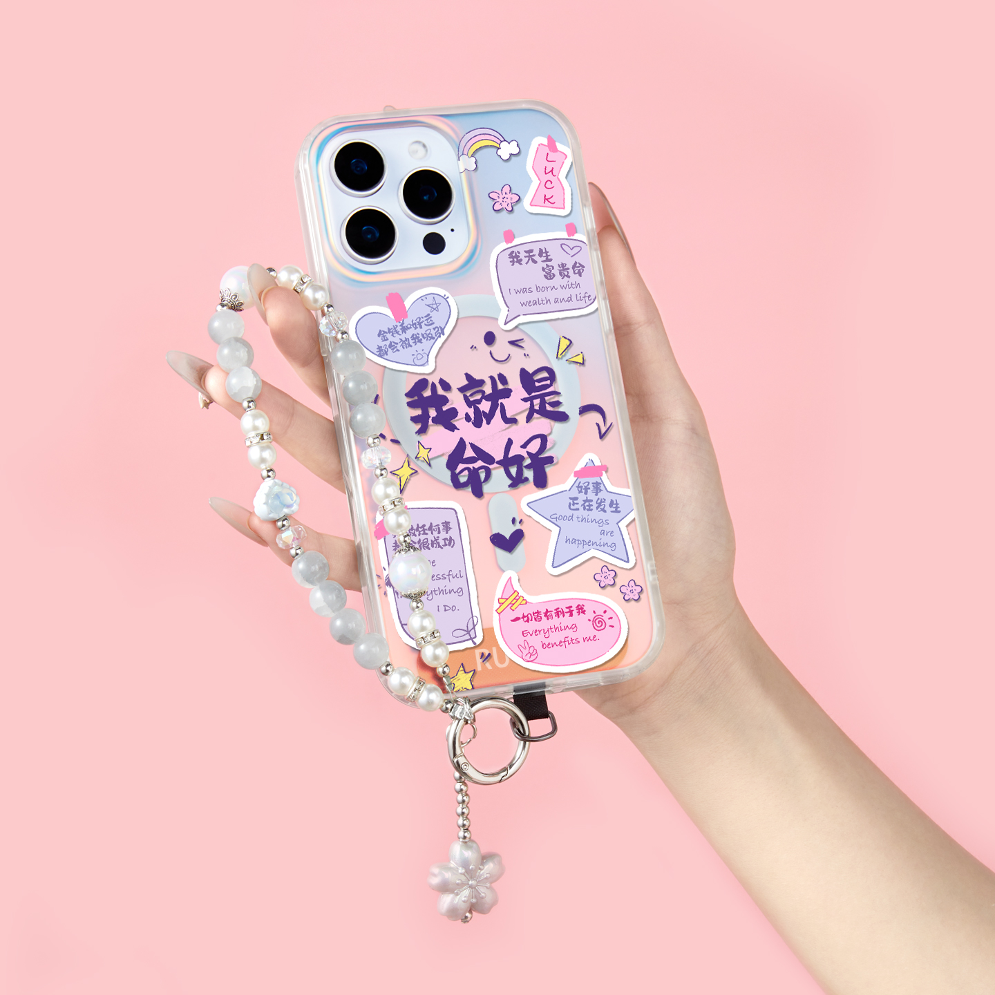 若墨手机挂链串珠手腕式时尚百搭手机链挂手腕轻奢小众精致高级感挂饰新款女ins风挂件挂绳带夹片垫片