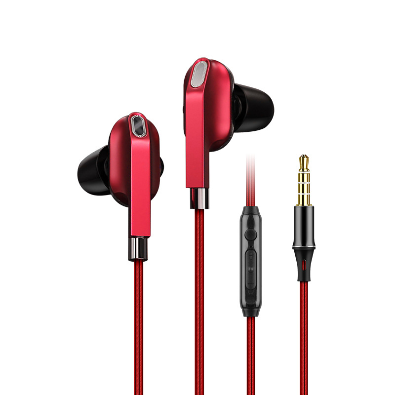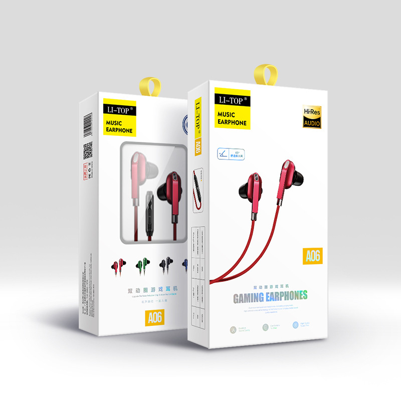 力拓A06入耳式重低音耳塞3.5mm双动圈线控通话带麦耳机工厂直销