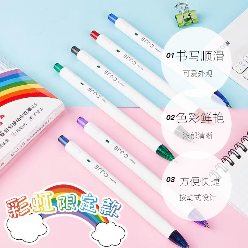 【自营】ZEBRA斑马彩虹中性笔JJ6学生专用ins日系高颜值按动水笔考试刷题做笔记彩色笔0.5手账笔虹彩白杆笔