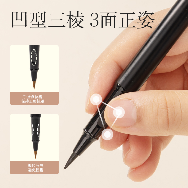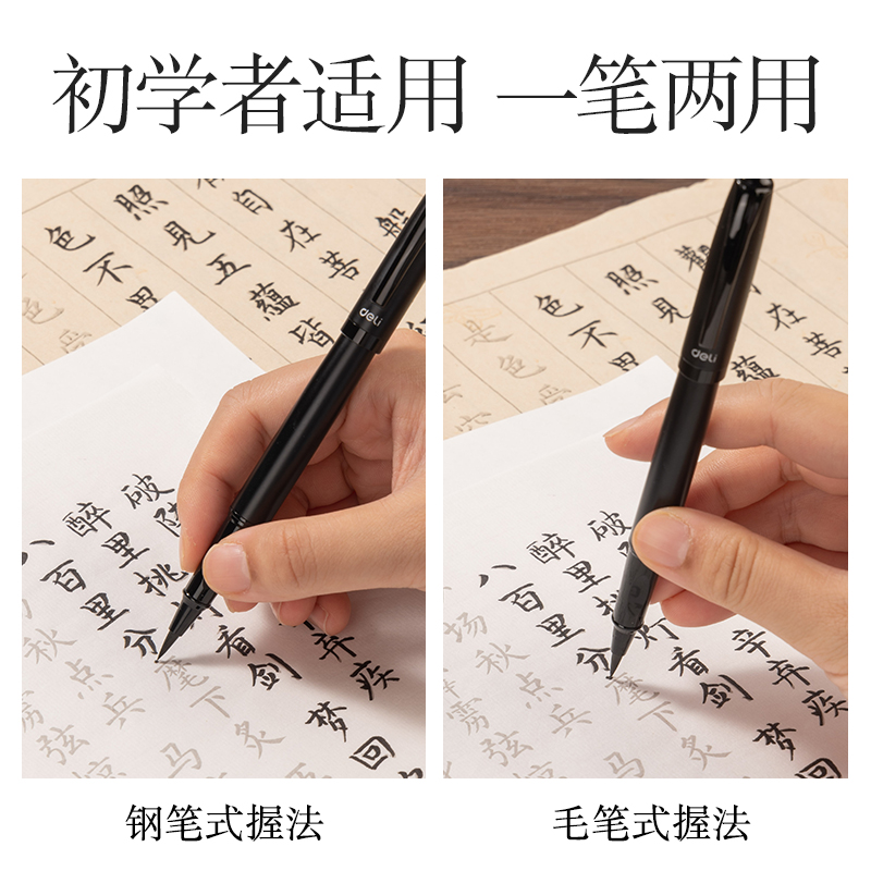 得力钢笔式毛笔易握笔杆无需蘸墨初学者书法练习自带墨囊小楷软头便携毛笔秀丽笔临摹字帖