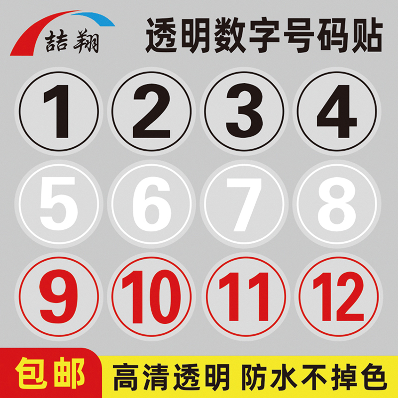 透明数字贴纸编号贴防水PVC号码贴幼儿园活动选手贴水杯贴医院档案室病例贴储物柜号码餐桌号贴广告标签制作