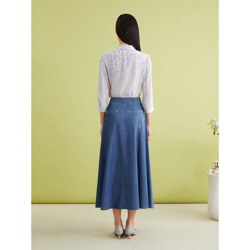 YINER音儿夏季法式木犀草渐变印花真丝衬衫上衣