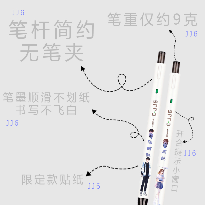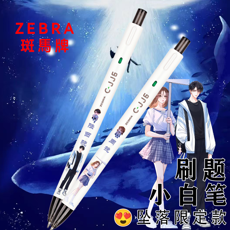ZEBRA斑马中性笔创意DIY贴纸坠落陆西骁周挽按动JJ6黑色水笔0.5mm