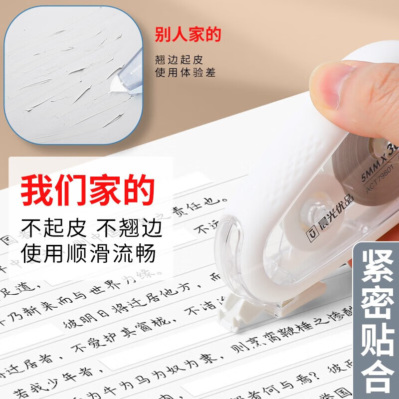 晨光静音耐摔修正带学生用大容量实惠装30m优品ins日系高颜值涂改带改正带遮盖力强小学生初中生专用改错带