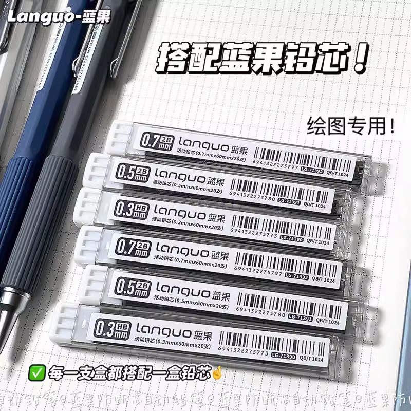 蓝果绘画自动铅笔2B铅笔0.3/0.5/0.7不易断芯防断芯金属低重心自动铅笔芯男女生小学生用美术生绘图素描勾线