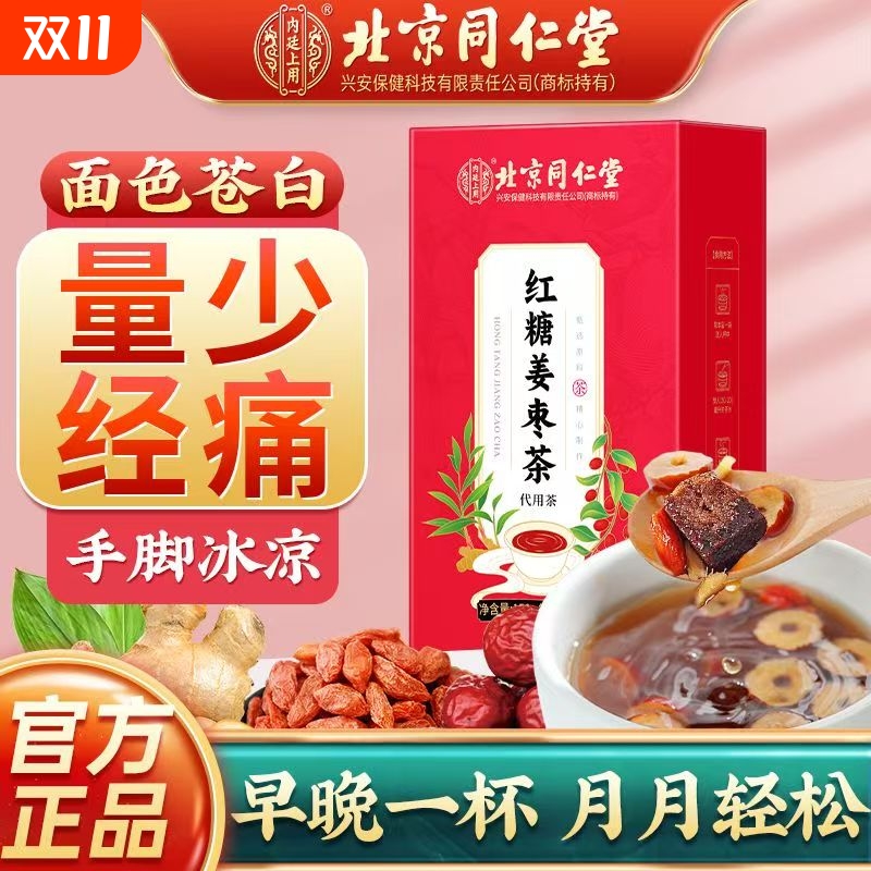 北京同仁堂红糖姜枣茶大姨妈水宫寒姜糖块秋冬养生茶调理枸杞气血