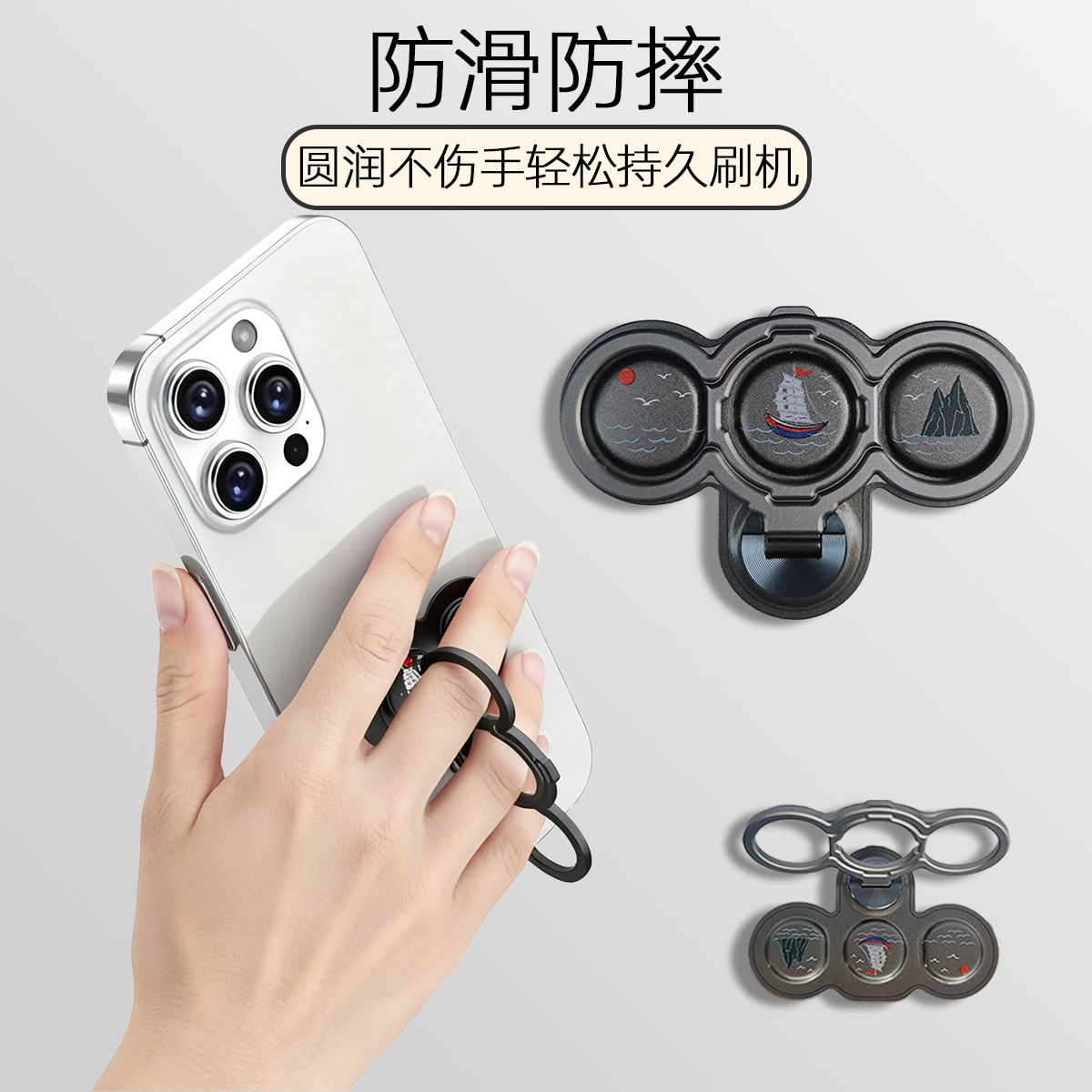 三指环360度旋转支架 多功能指环手机支架 强力胶粘手机支架