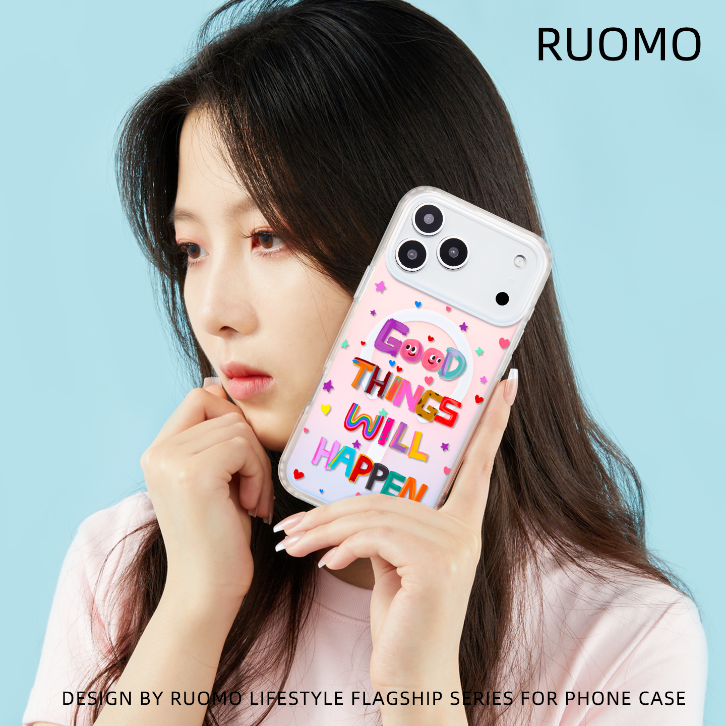 若墨适用苹果17promax手机壳iphone16pro新款女15镭射14磁吸带挂绳13超好看原创多巴胺彩色字母12防摔外壳