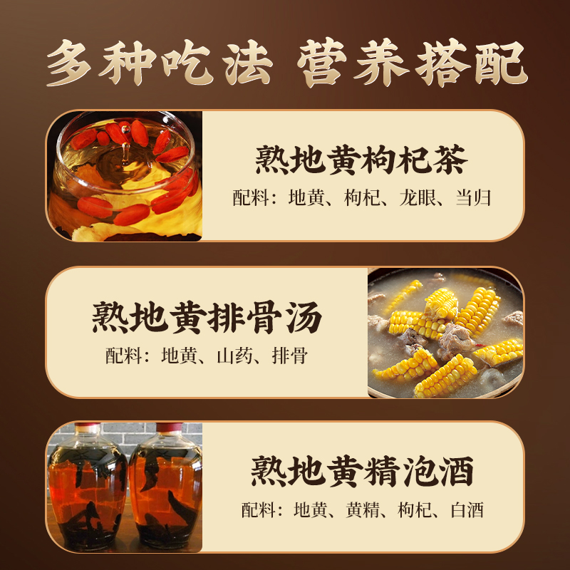 熟地黄九蒸九晒即食中草药材古法蒸晒泡水非生地黄河南焦作