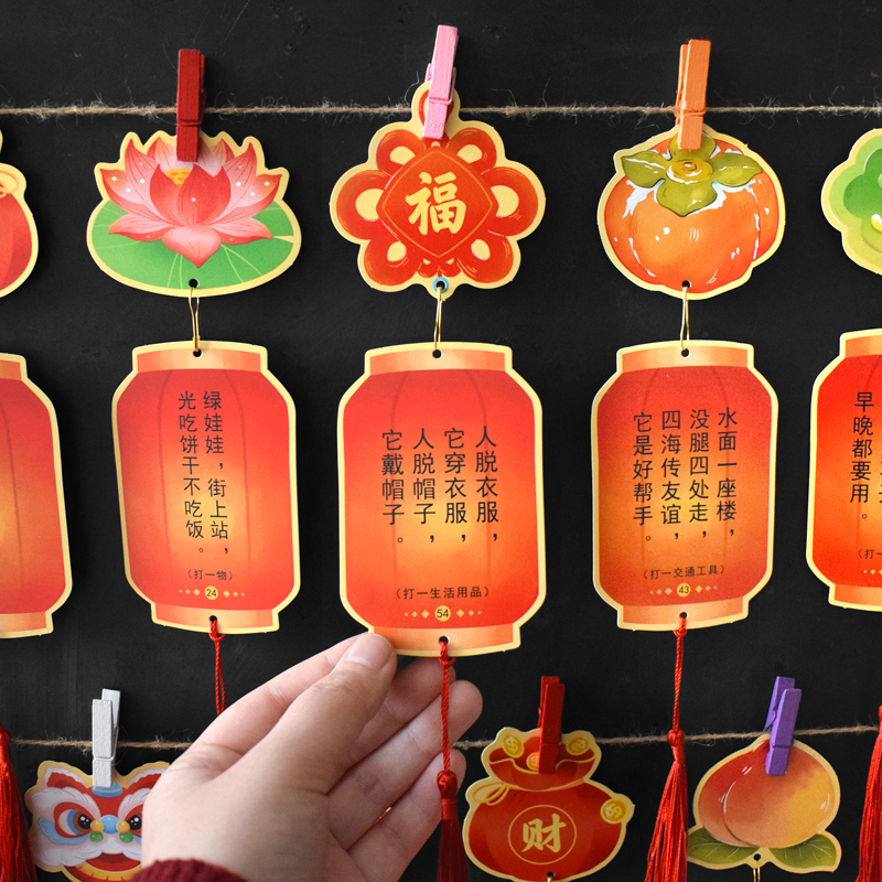 中秋节日猜灯谜卡片纸中国风红灯笼幼儿园儿童手工自制场景布置道具装饰谜语挂牌2025小学生猜字谜条空白挂饰