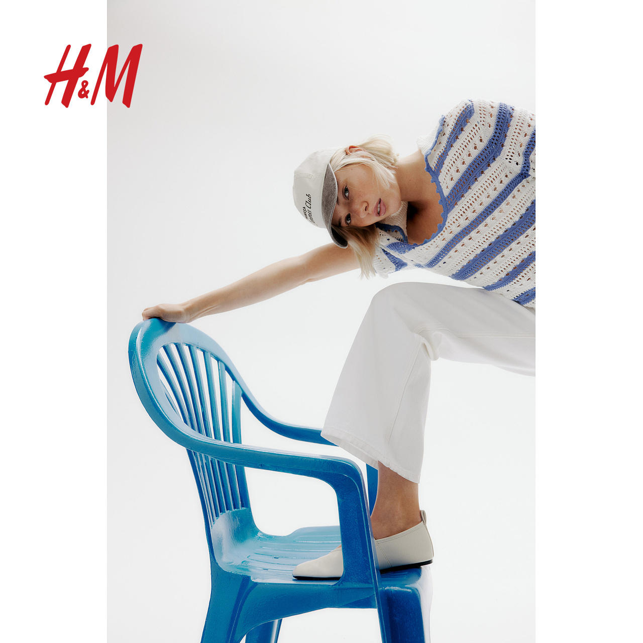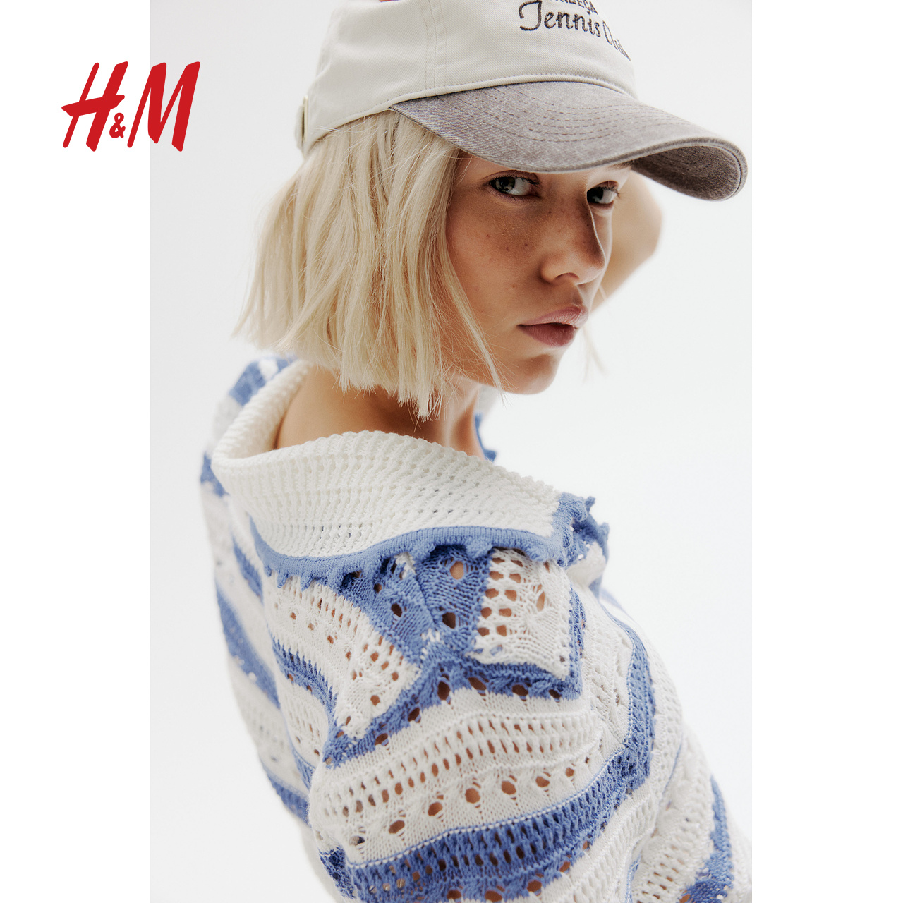 HM女装2025年秋季新款气质有领镂空针织上衣1276166