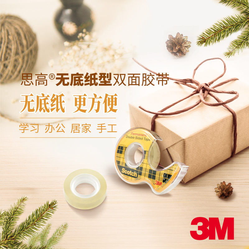 【对联常用】美国3M胶带透明胶双面胶对联隐形胶学生用高粘度手工手账文具不易留痕大容量两面胶无痕胶