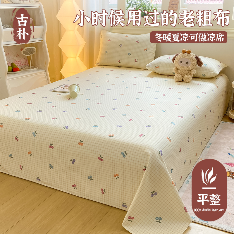 纯棉老粗布床单单件凉席夏季双人100全棉单人宿舍加厚被单三件套