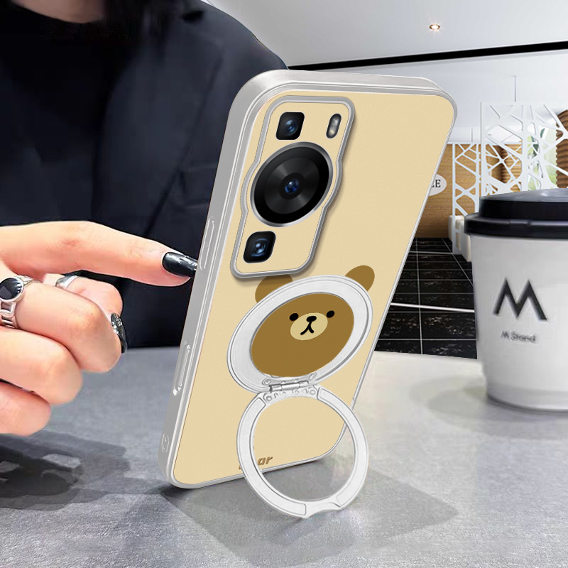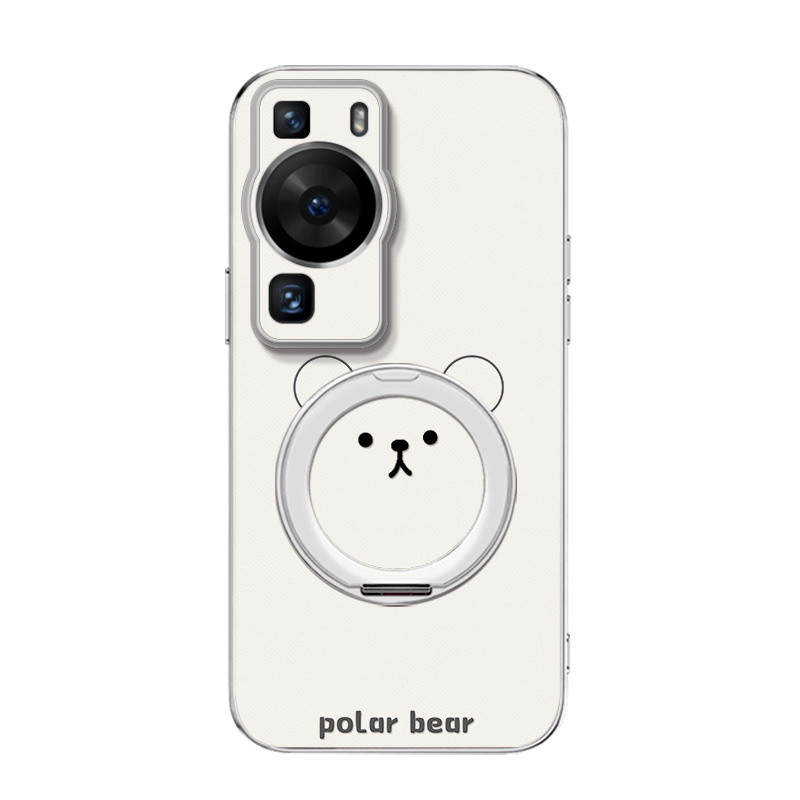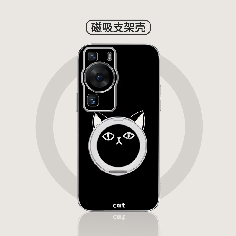 圆脸熊猫适用华为p60手机壳p60pro新款p50卡通pura80pro高级感p40磁吸支架p50皮纹全包pura70防摔支点保护套