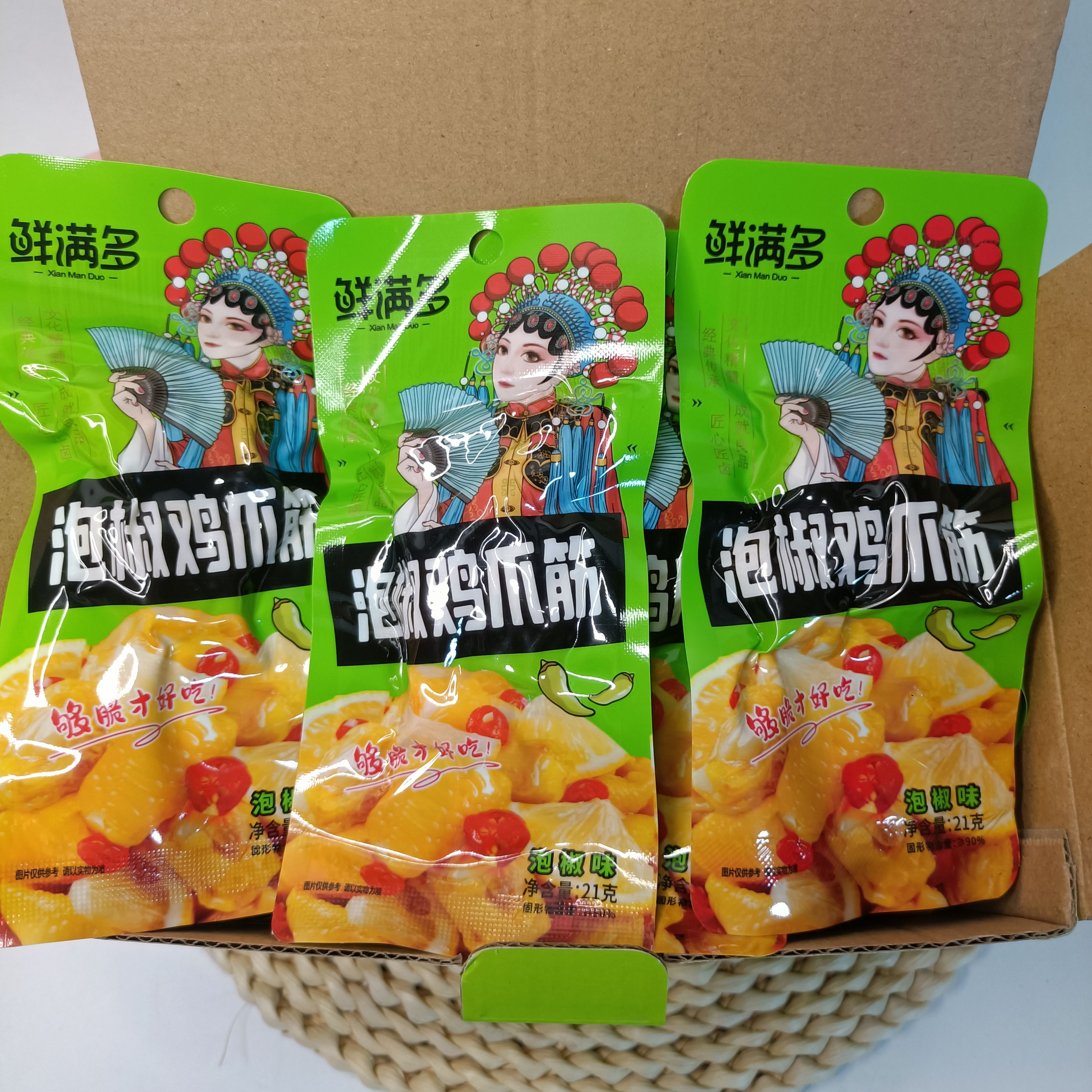 鲜满多泡椒味鸡爪筋酸辣柠檬味21g*30袋无骨凤爪肉小零食解馋