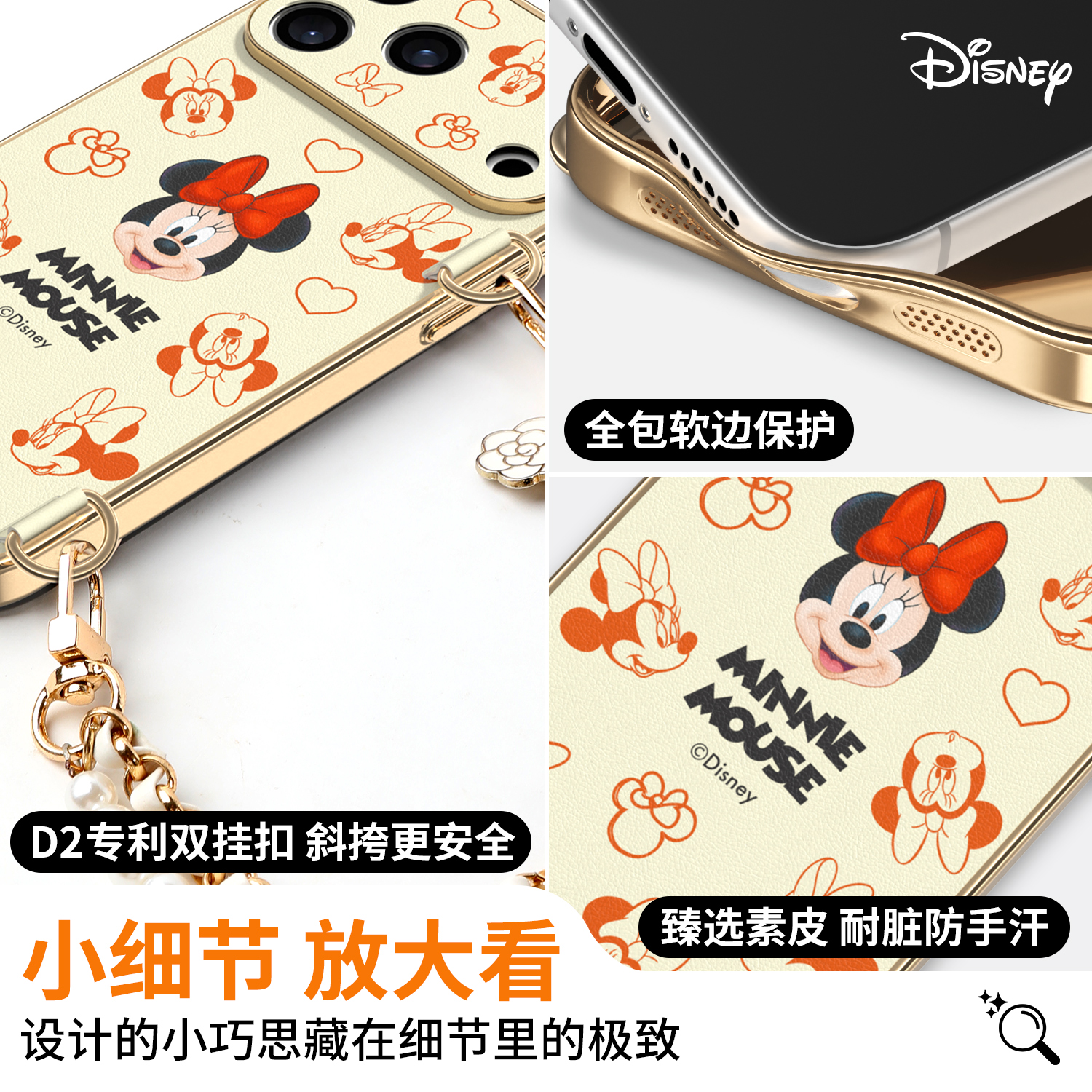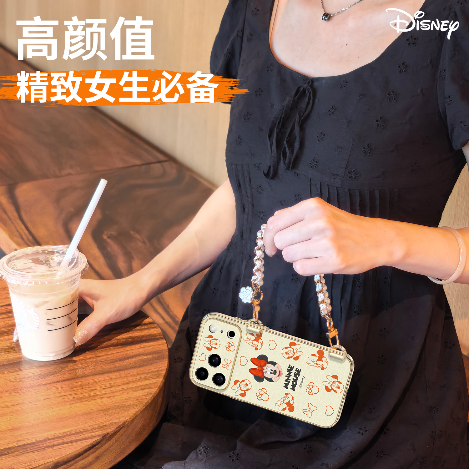 迪士尼正版适用苹果17pro手机壳2025新款橙色iPhone16promax带挂绳可斜挎15高级感防摔17pm系列标准版全包女