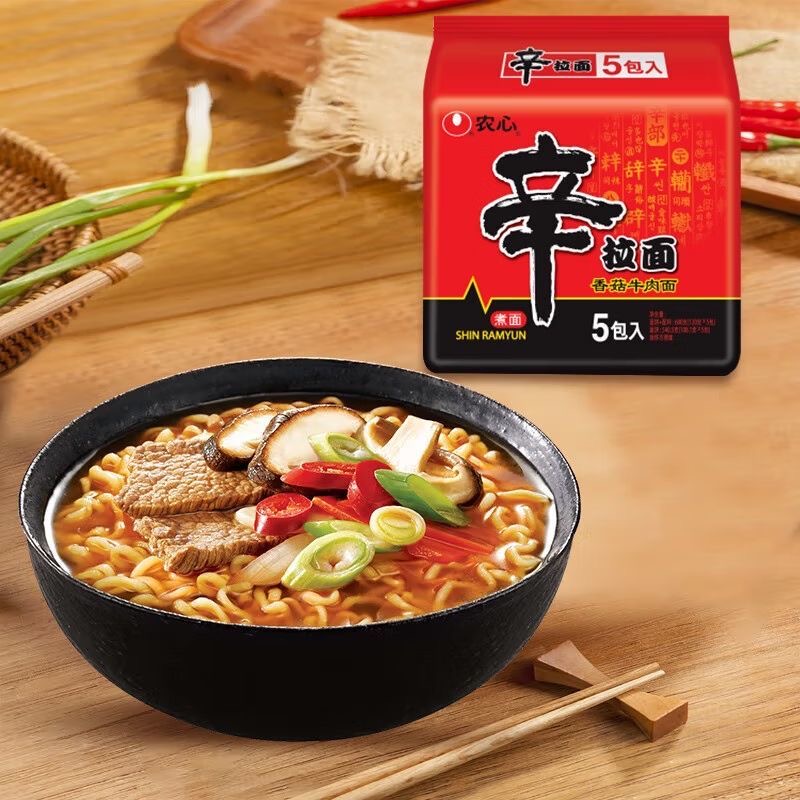农心辛拉面辣白菜韩国袋装5包整箱鲜虾面泡面方便面香菇牛肉韩式
