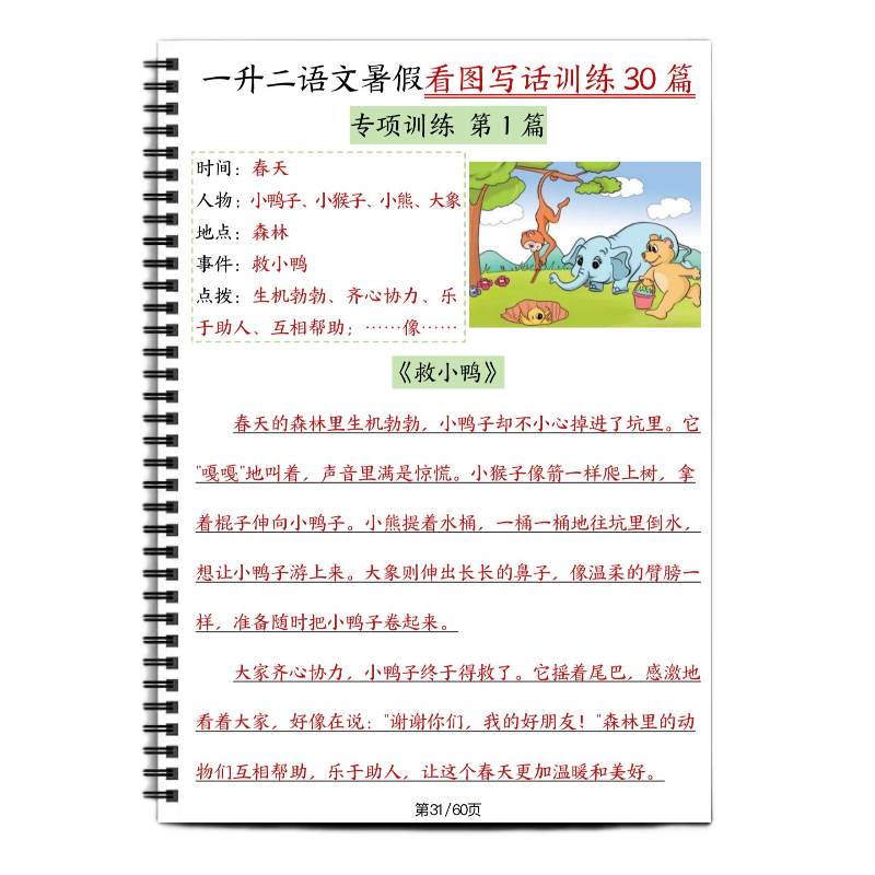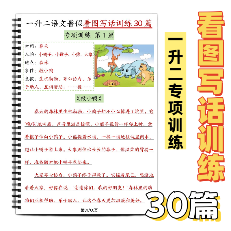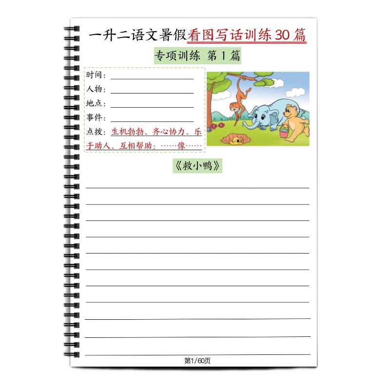 一二年级上册看图写话练习语文暑假训练30篇送纸质范文小学每日一练15分钟画画专项手工