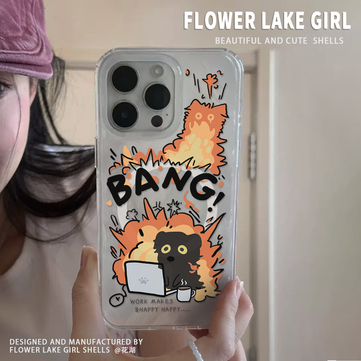 忍不了啦!打工猫狗情侣适用iPhone15/16promax手机壳红米K70磁吸vivos18华为mete60pro羽纱小米14pro一加ACE3