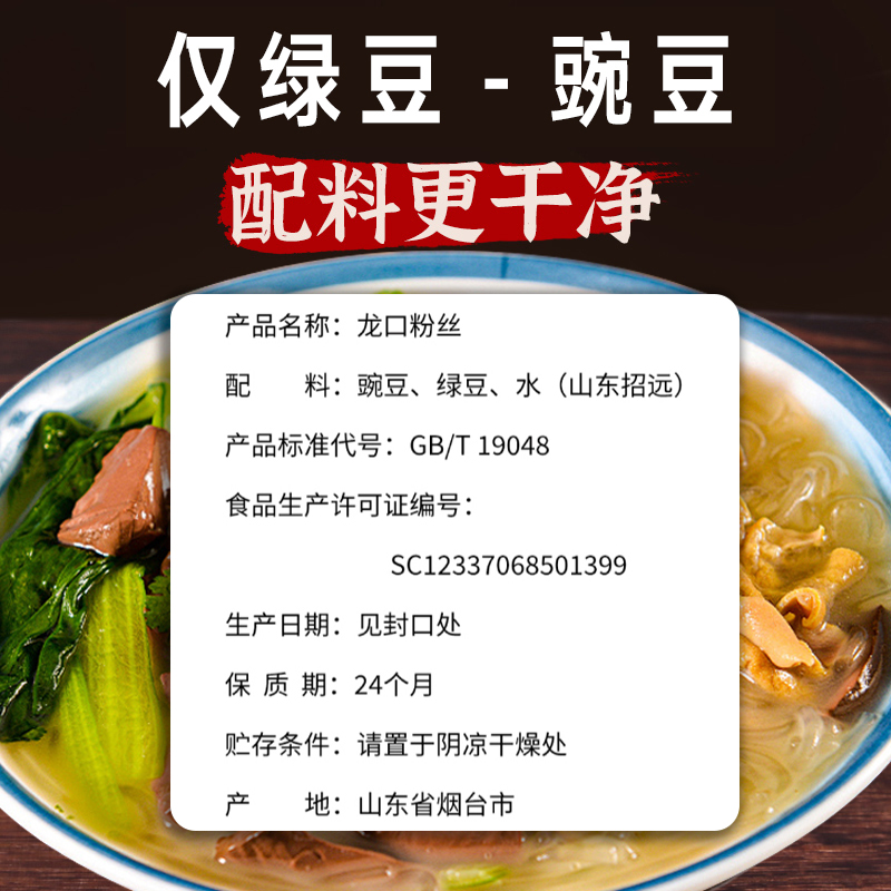 山东正宗龙口粉丝水晶粉凉拌火锅米线鸭血家用烧烤汤干绿豆粉