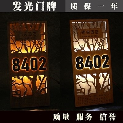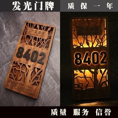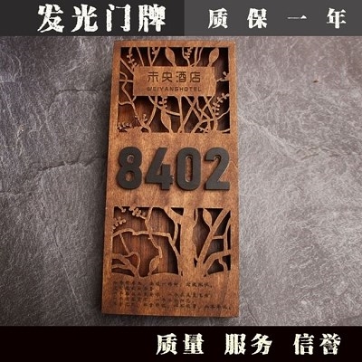 1订做订制牌子木质民宿数字门牌包厢发光门O牌美观木牌标识牌房间