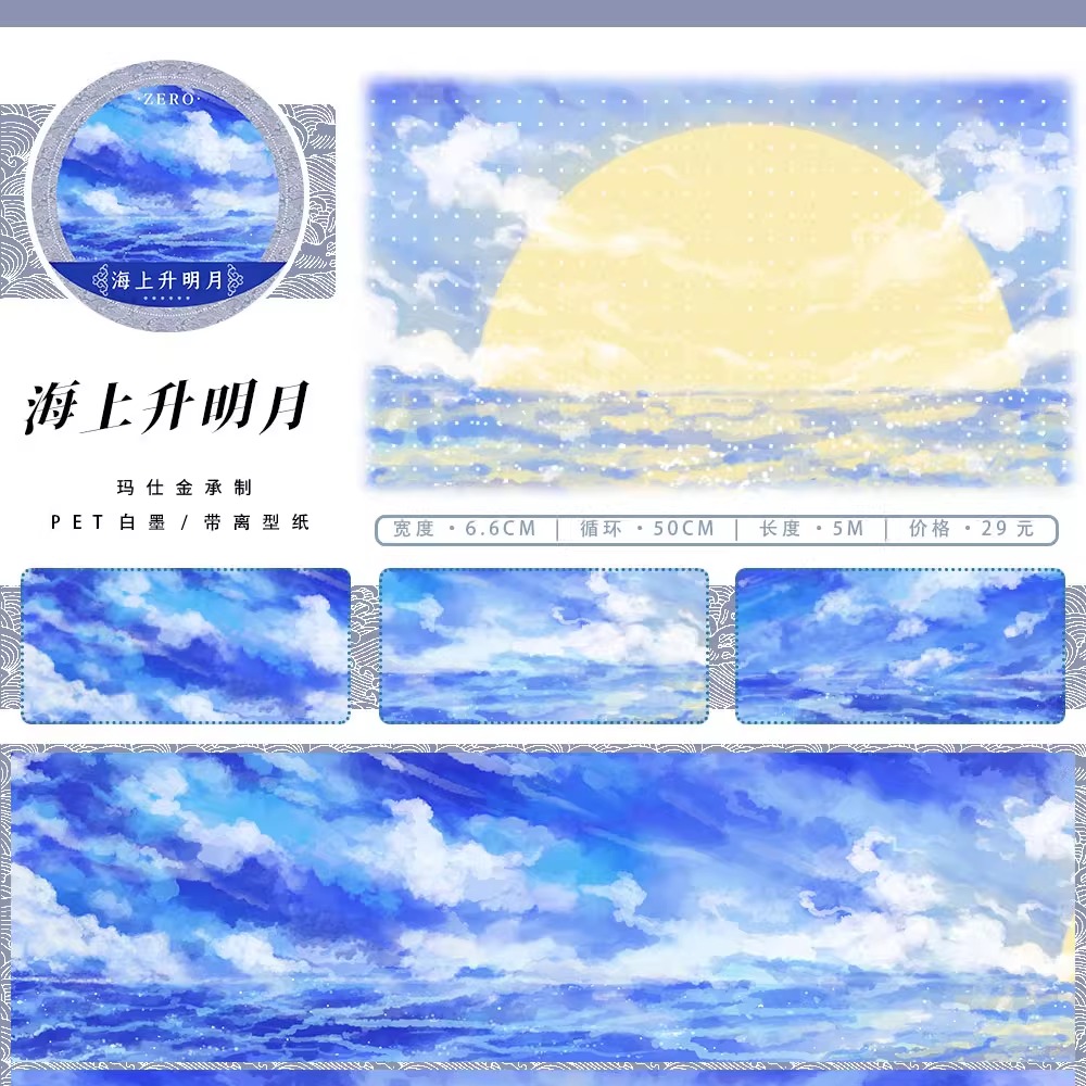 ZERO原创#十月复刻海上升明月月圆夜景天空古风造景胶带手帐拼贴