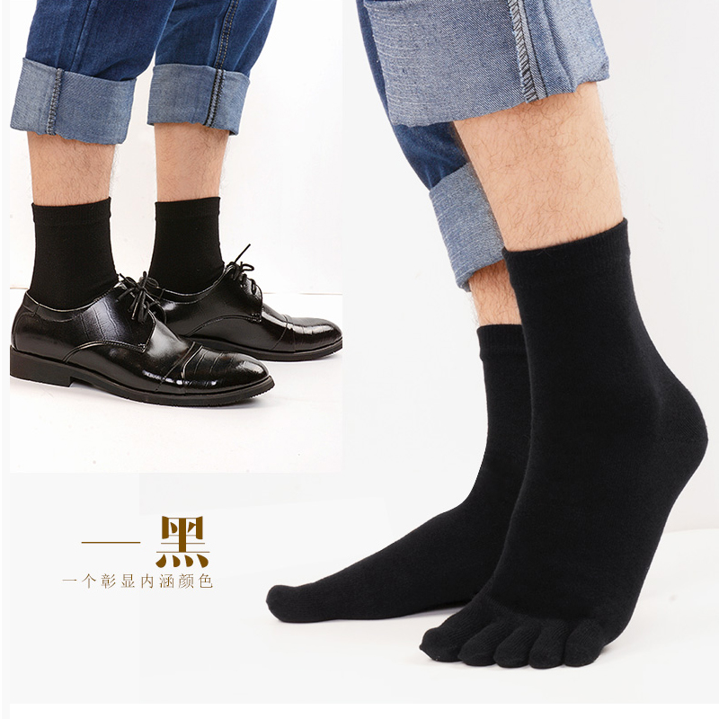 五指袜男纯棉袜防臭秋冬季加厚款中筒脚趾袜子男士五指头分趾抗菌