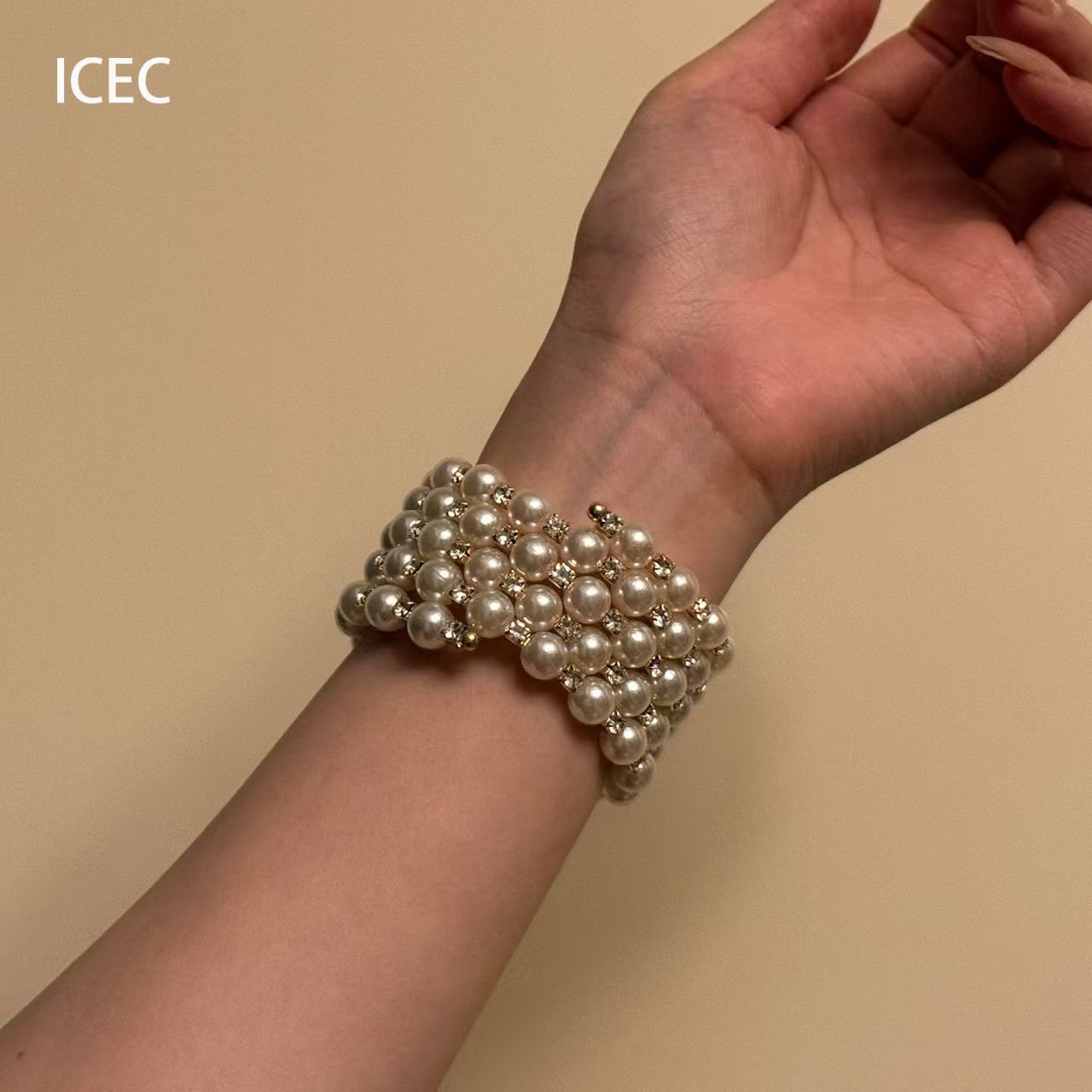 法式闪钻多层珍珠手镯复古宫廷风重工优雅气质轻奢精致千金感手饰