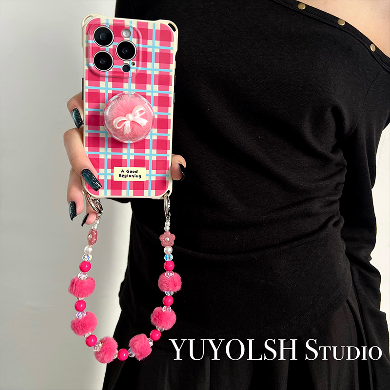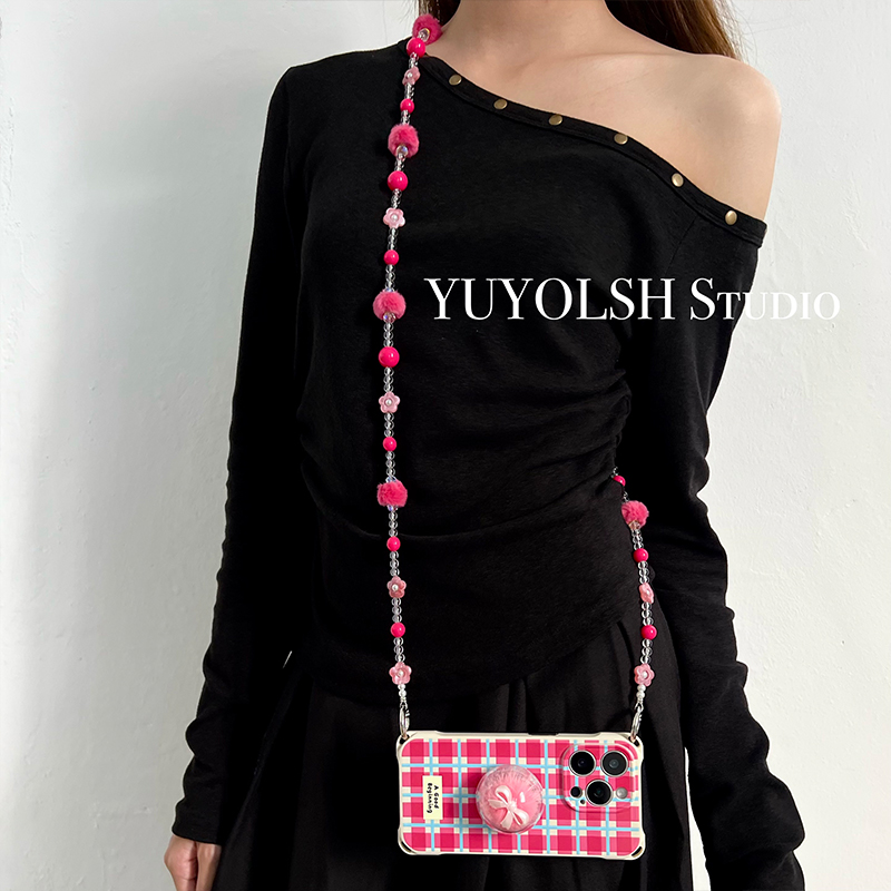 【粉蓝格调】原创秋冬毛绒链条斜挎可背适用于苹果17手机壳oppofindx8貂毛支架小米17Pro背带斜跨mate70挂绳