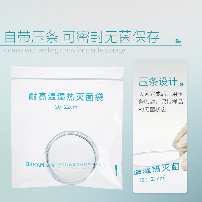 比克曼生物可湿热高温高压灭菌袋呼吸袋带压条高压蒸汽自封袋实验室消毒无菌牙科口腔一次性封口袋灭菌耐高温