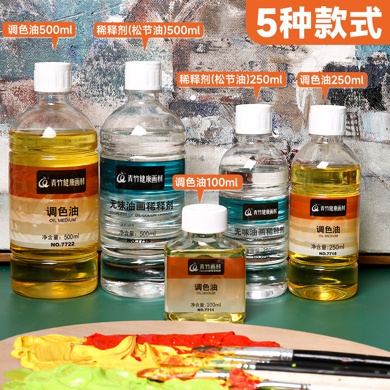青竹画材松节油无味稀释剂油画颜料套装调色油清洗剂稀释剂去污洗笔工具材料底料套装油画洗笔液上光油亮光剂