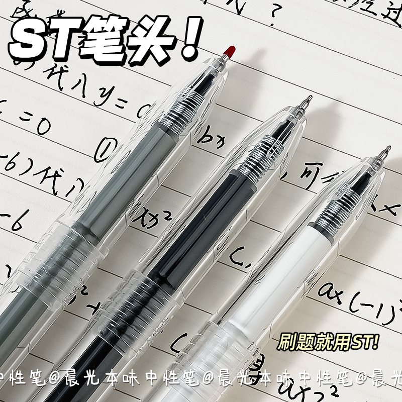 ST刷题笔高颜值按动中性笔圆珠笔黑色水笔小学生专用考试0.5速干碳素笔水性黑笔按压式做笔记签字笔非按斤卖