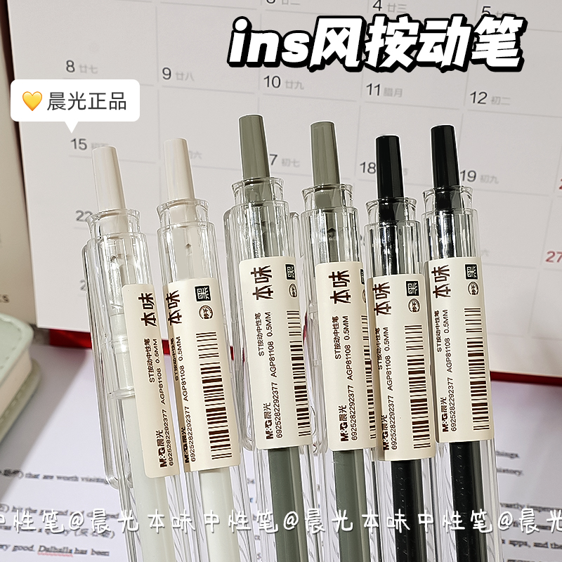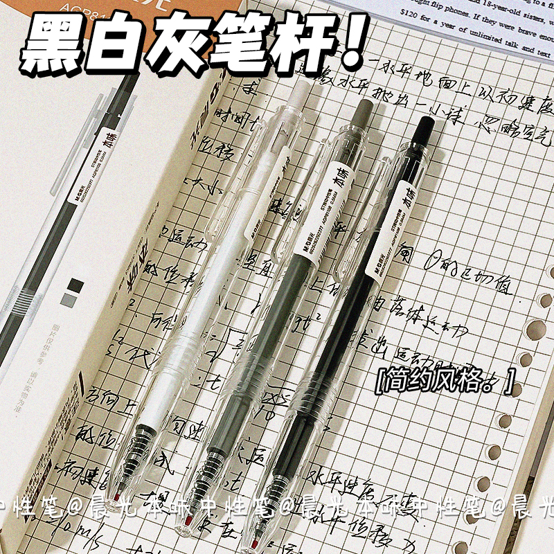 晨光本味按动笔刷题ns简约高颜值0.5mm黑色st水笔学生专用中性笔速干顺滑ST小学生中学生刷题考试签字笔黑笔