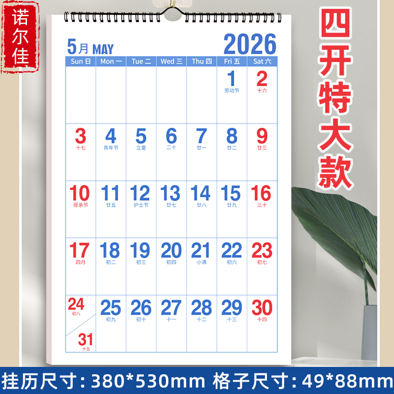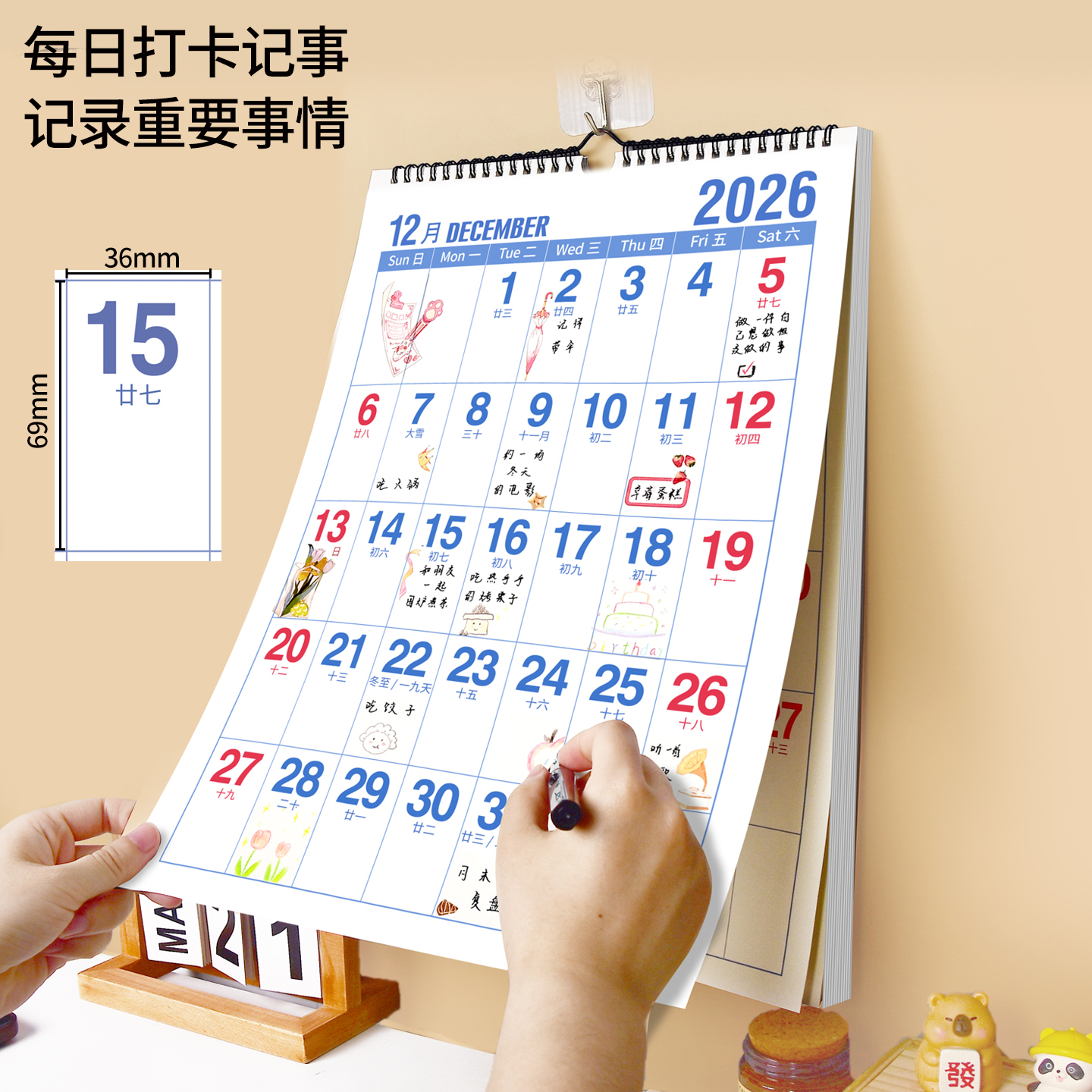 2026年特大号挂历2025简约月历本大格子记事日历本挂墙年历手撕历