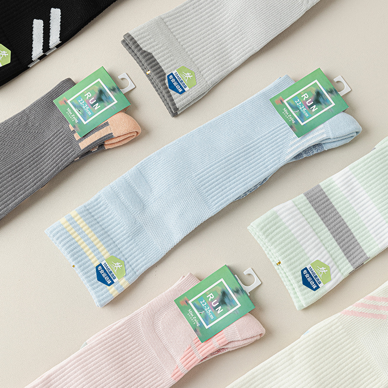 5双装 往往精梳棉质3A抗菌女士袜子中长筒袜纯色休闲男袜秋冬季