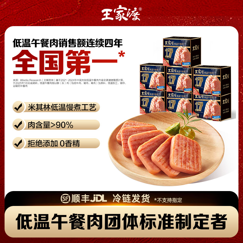王家渡低温午餐肉198g*4盒三明治火锅猪肉火腿泡面酸辣粉早餐食材