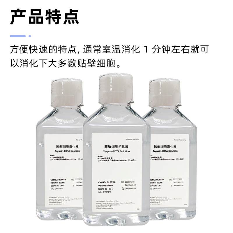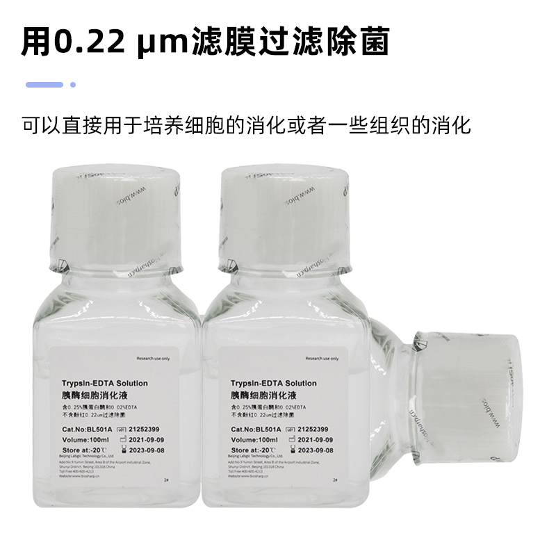 白鲨Biosharp BL501A 0.25%胰酶细胞消化液 不含酚红 不含EDTA 100ml/瓶