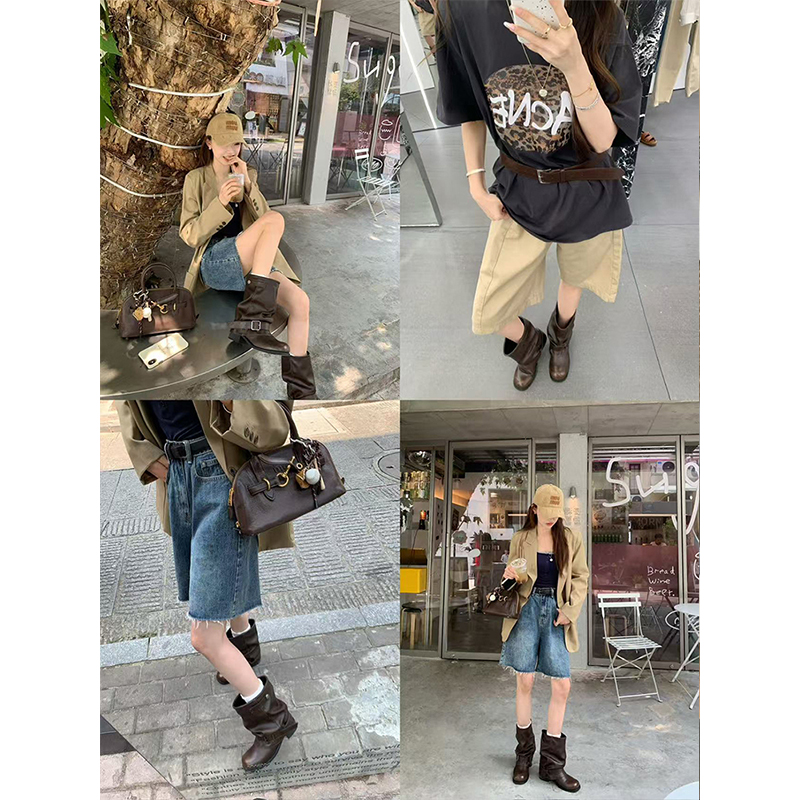 真皮~美拉德内增高短靴女秋2025新款复古马丁靴西部牛仔靴堆堆靴