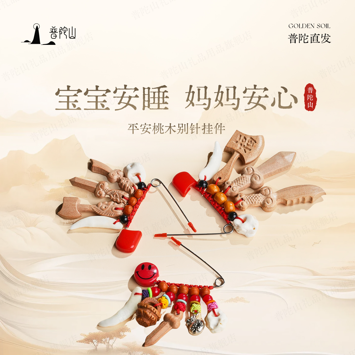 普陀山宝宝压惊别针婴儿童护身符黑狗牙孕妇外出防受惊吓桃木挂件