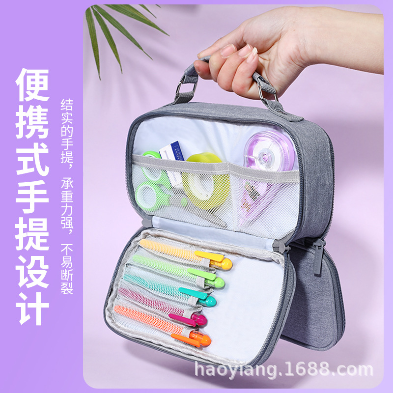 大容量笔袋文具盒男孩款可手提双拉链多功能简约风格初高中适用