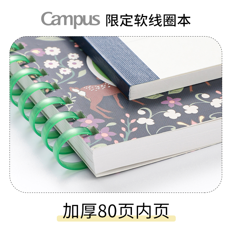 kokuyo日本国誉Campus加藤木系列软线圈本加厚学生碎花彩色螺旋设计记事本B5/A5练习本笔记本子80页迪士尼