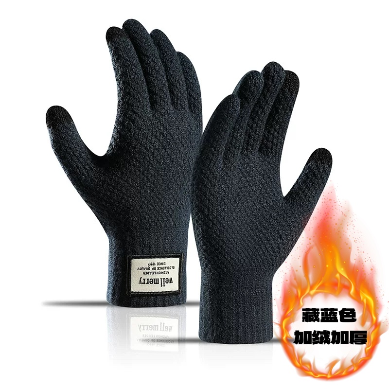 手套男秋冬季男士手套学生帅气触屏加厚毛绒手套骑车防寒保暖针织